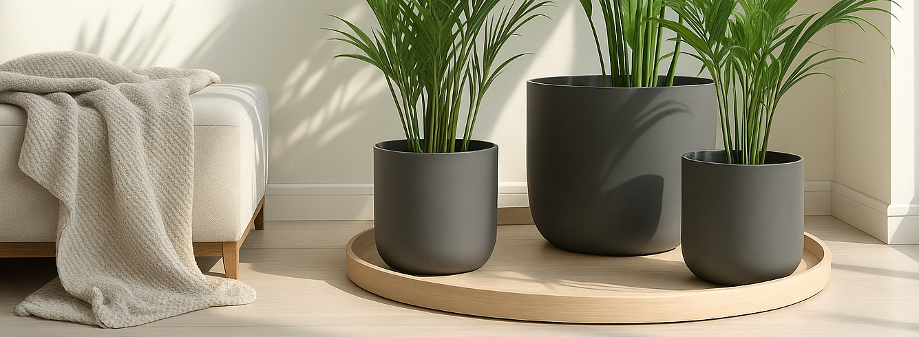 We offer a carefully curated selection of modern plant pots and planters made from recycled, sustainable materials. Available in various sizes, shapes, and styles — including floor and wall-mounted options — our range has something for every space. Click on any product to view detailed information. Please note: all planters are sold without plants.