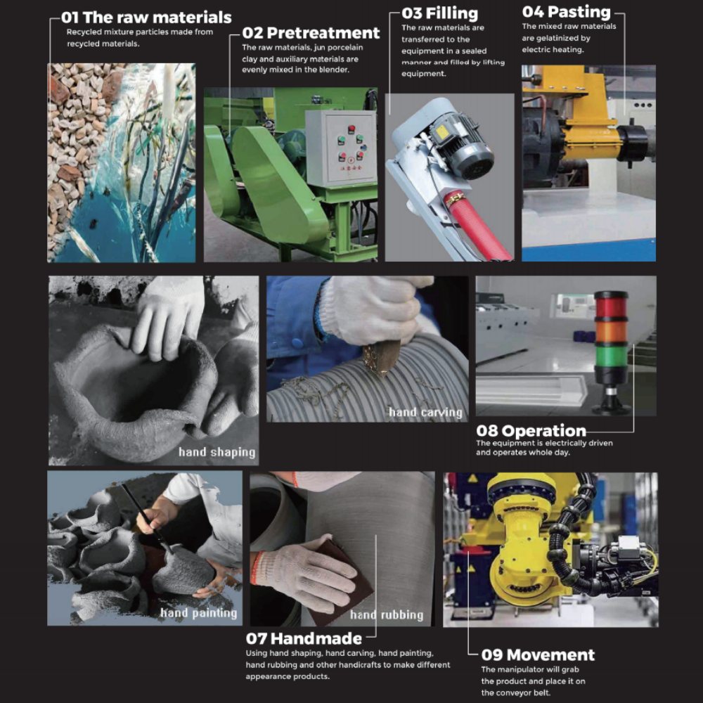 Patent material: not resin, not plastic, not concrete, not ceramic. It is a mixture of blend the Jun porcelain clay and the polymer resin and wood powder together at a high temperature.