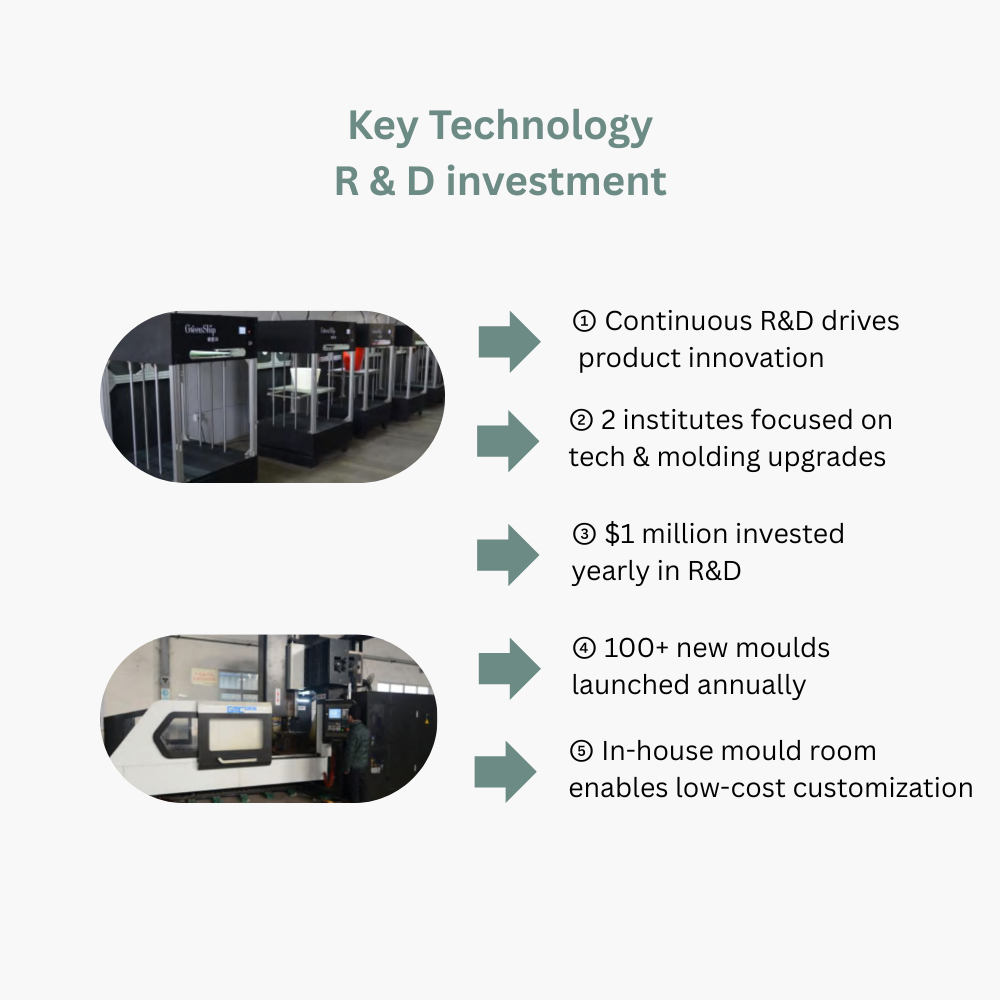 We operate two specialized research institutes exclusively focused on the development of cutting-edge technologies and advanced molding processes.
